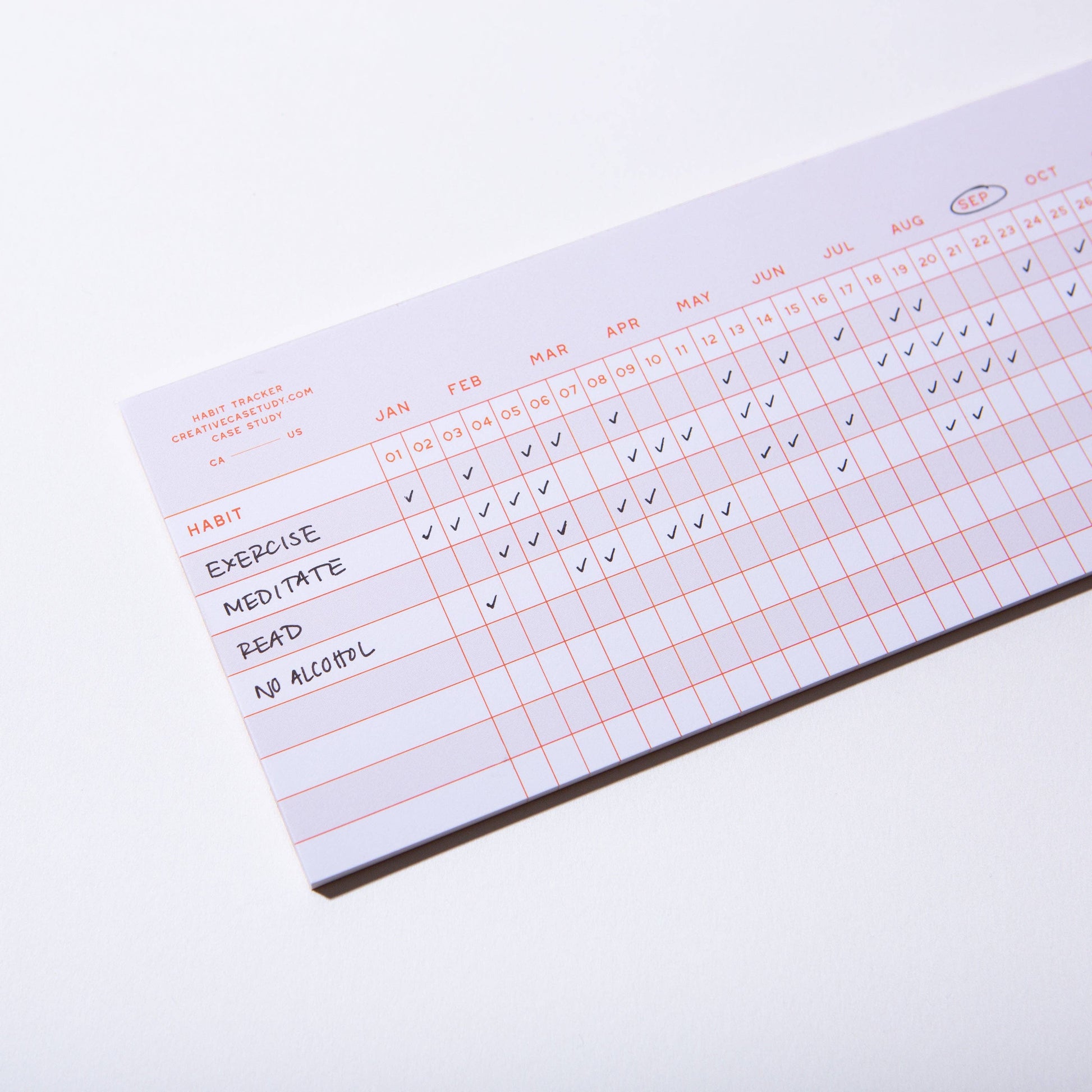 Each page can be torn off when a new month comes around. Keep your sheets as you go to see how you've progressed over the course of a year!