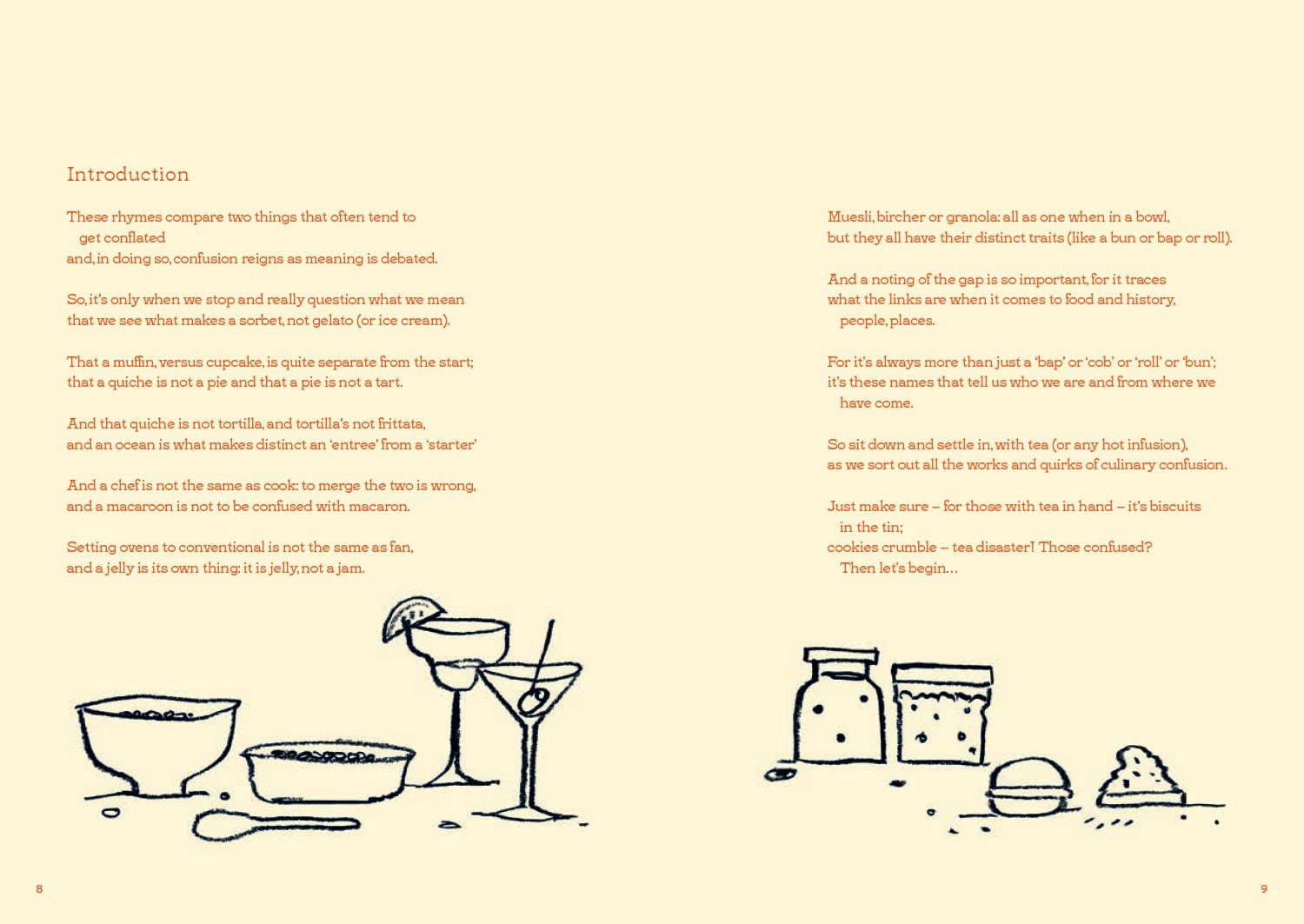 These rhymes compare two things, which, though they seem to be the same/ reveal themselves to be unique in character and name. Charming, fun and whip-smart, these rhymes from food writer Tara Wigley tell you everything you wanted to know about ingredients, cooking and kitchens, but were afraid to ask. Confused as to whether you should use baking soda or baking powder in your cake? Can you tell a King Edward from a Duke of York? Or pick a Parmesan from a pecorino? In these 30 rhymes, Tara imparts years of cooking knowledge from the world-famous Ottolenghi test kitchen to solve all your culinary conundrums in a way that is accessible, memorable, witty and–most of all—fun. The rhymes can be gobbled up in one sitting or carefully chewed in bitesize portions. Playful riffs on etymology, Anglo-American cultural differences lost in translation, and the subtle differences between products and ingredients feature throughout, teaching us about w