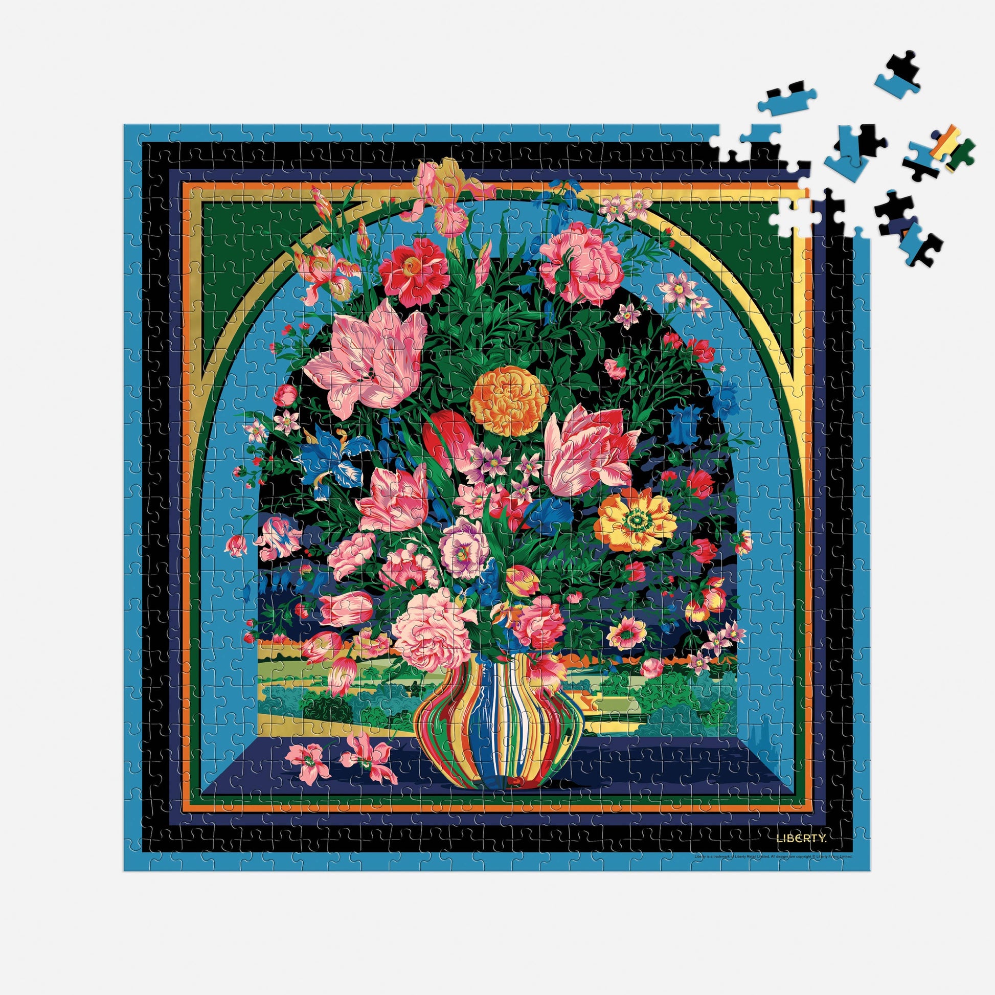 The Liberty Vista 500 Piece Puzzle brings the charm of a hand-painted window view to your puzzle table. Featuring Liberty’s Vista print—a serene floral scene framed by a window—and packaged in a stunning book-shaped keepsake box with magnetic closure, this puzzle is both a meditative activity and a collectible piece of design history.