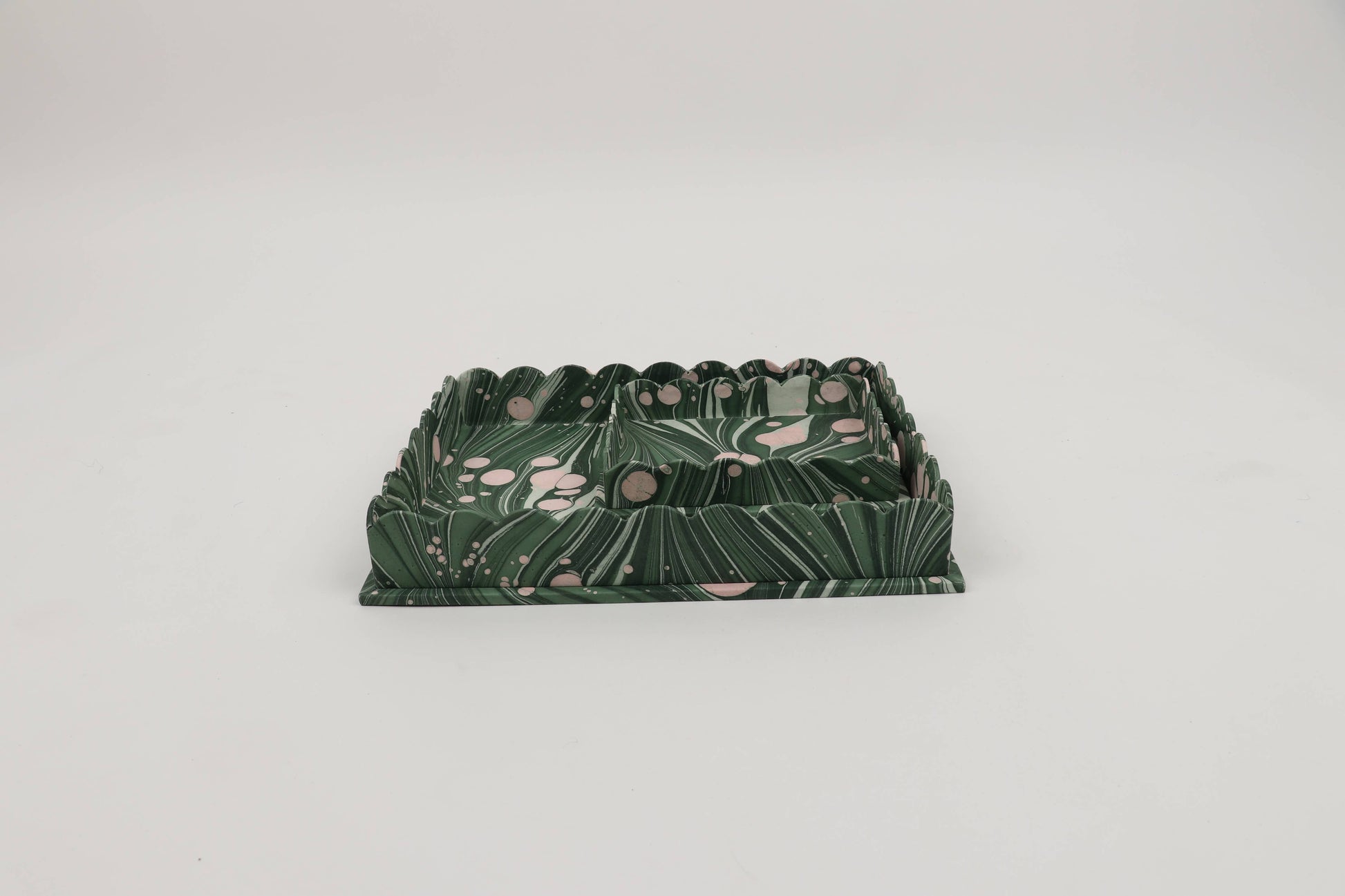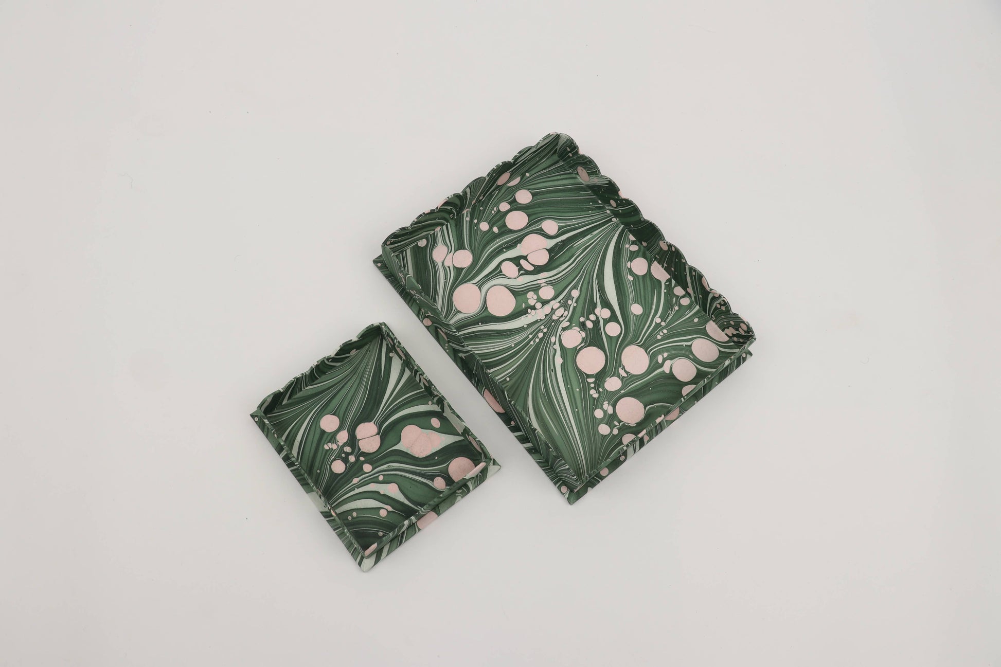 Hand-Marbled Recycled Paper Tray Set – Nested Pair