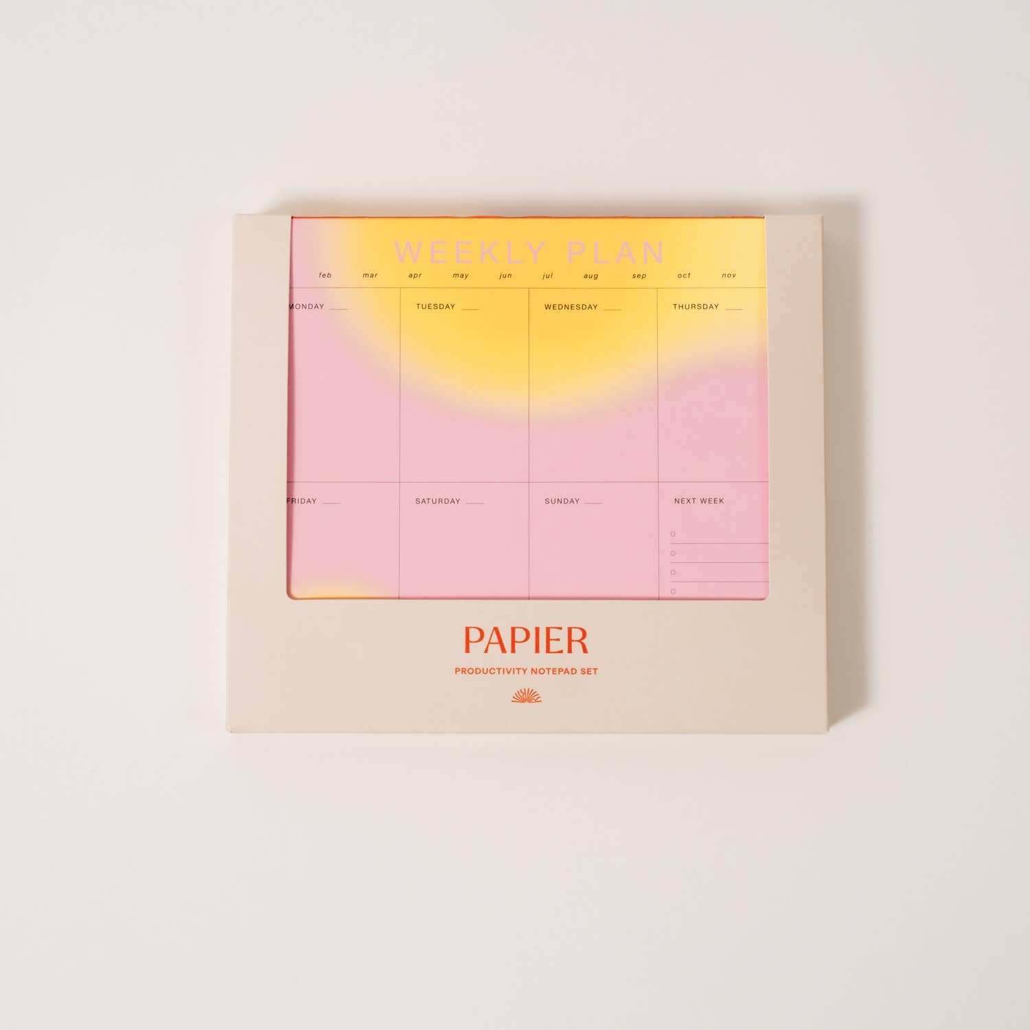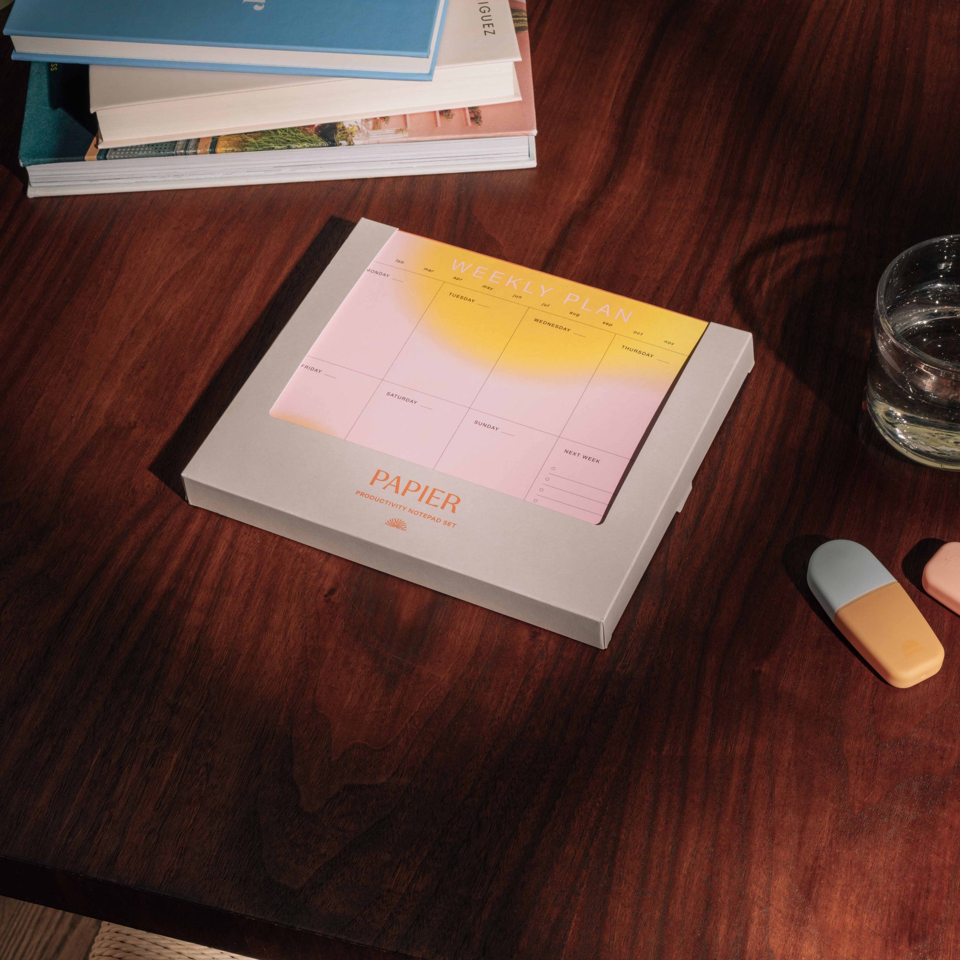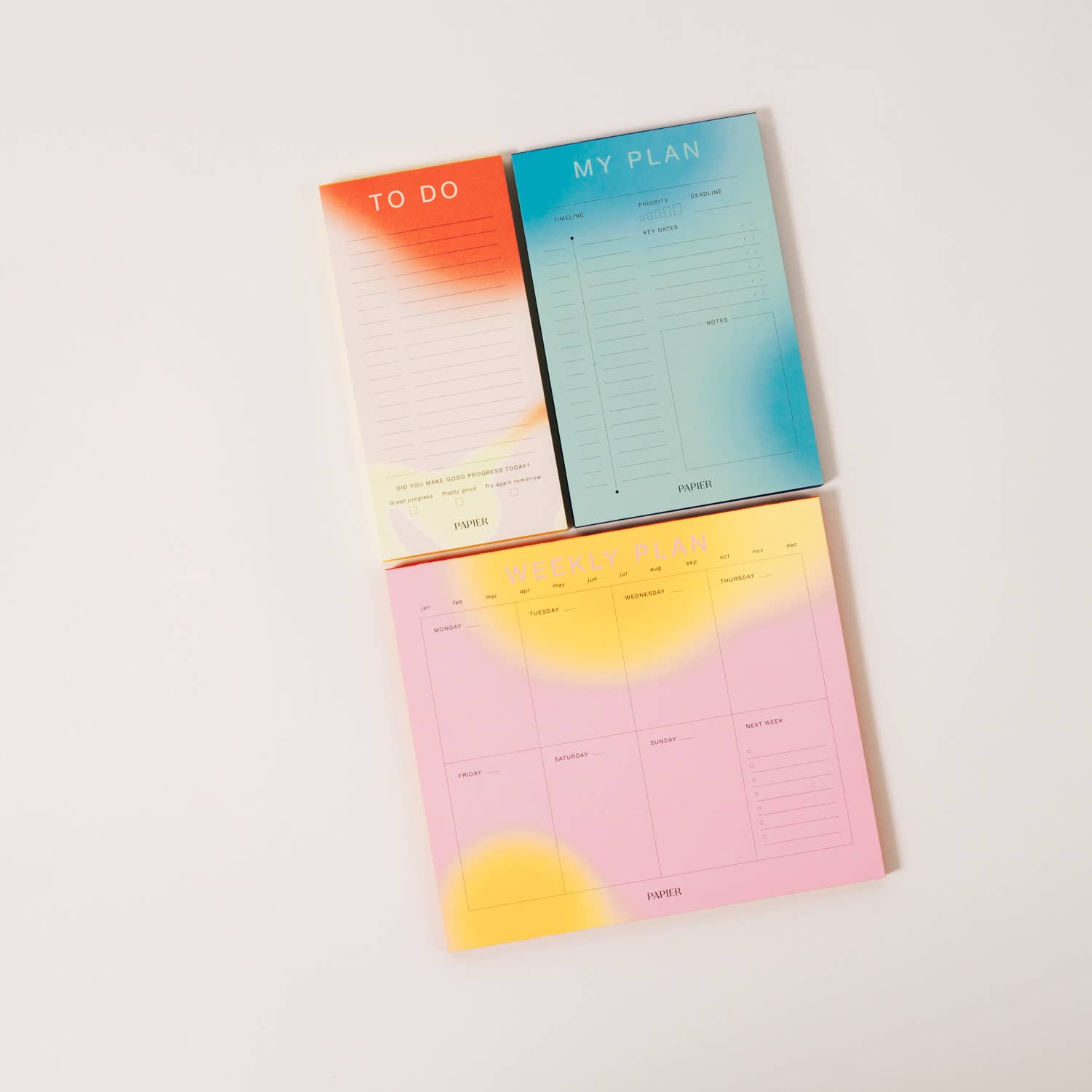 Stock your shelves with Papier's set of 3 productivity planning listpads - the ultimate solution for customers looking to plan their week, track projects, and stay on top of to-dos. Each planner pad features a unique ombre design with vibrant, pop-colored edges, making organization both functional and stylish. A must-have addition to any stationery range, this set is perfect for retailers looking to offer fun, high-quality planners to help customers feel inspired and productive.
