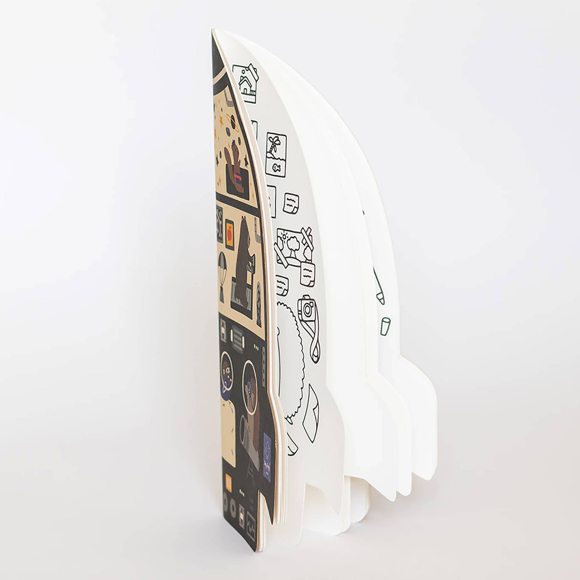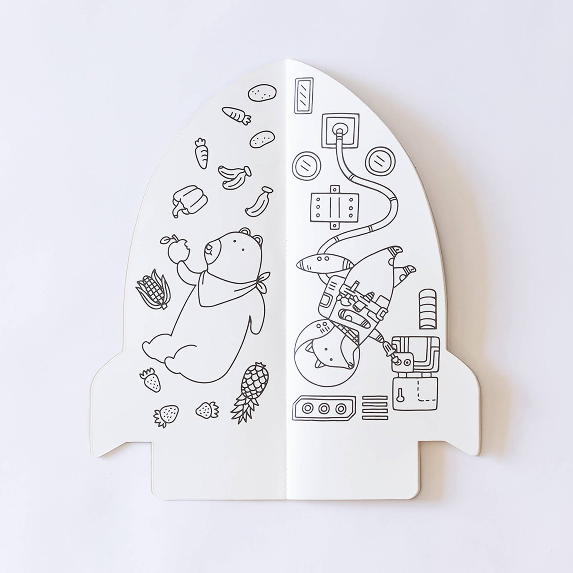 A jumbo sized coloring book featuring Jaq Jaq & her friends! Come ride inside a rocket ship and fly through the galaxies with Sammie, Esme and Sloane! Each book contains 6 fully illustrated pages for coloring and 26 blank pages for doodling, drawing or wherever your imagination takes you. Which activity will you occupy yourself with on board as you travel to the stars?